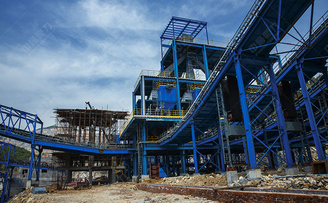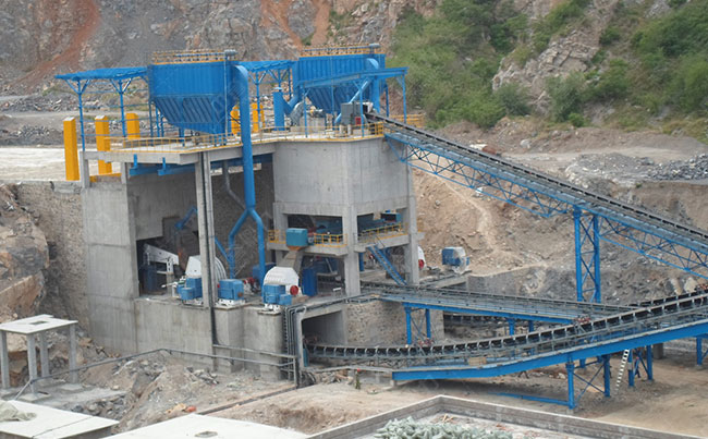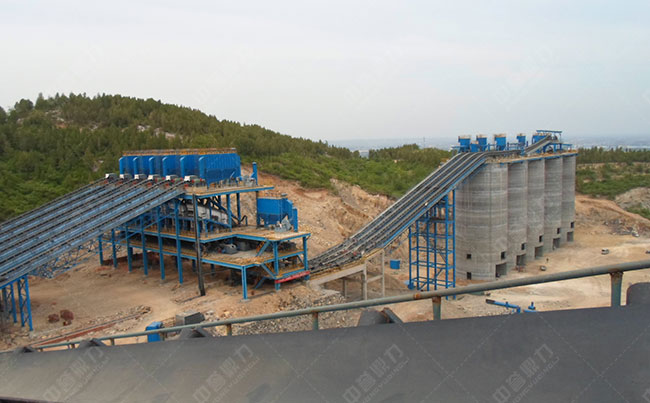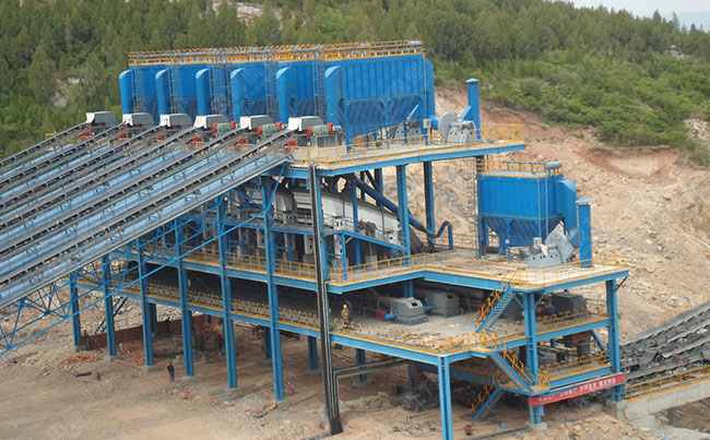 主要設(shè)備:振動給料機(jī)ZG2050*1臺、重型錘式破碎機(jī)PCZ1820、PCZ1620、圓振動篩3YK3070*4臺、2YKZ3070*1臺、DMCA除塵器5臺